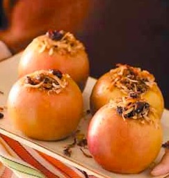 Combine raisins, coconut, brown sugar and cinnamon; spoon into center of apples. Fold foil over apples; seal tightly.