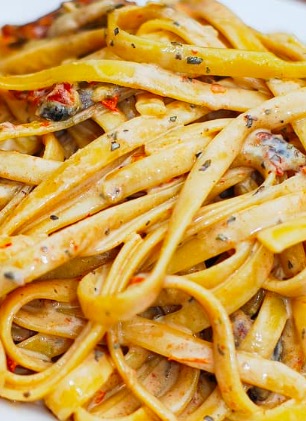 Sun-Dried Tomato and Mushroom Pasta in a Garlic and Basil Cream Sauce