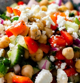 Add chickpeas, vegetables and mint; toss to coat well. Cover; eefrigerate at least 30 minutes or until ready to serve.