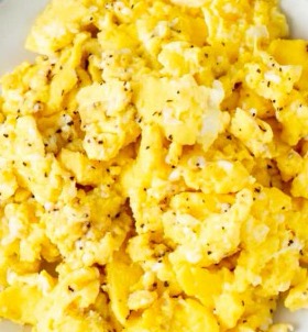 You may need to change the way that you have always made scrambled eggs to get the best scrambled eggs ever. Start with a cold pan, add the eggs and then the butter. No milk or cream necessary. Serve any time of day with your favorite sides.