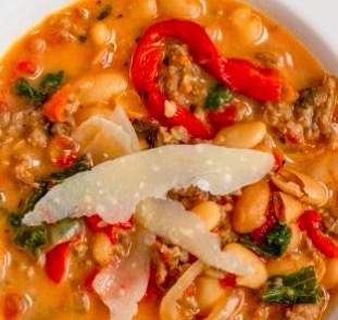 Get your soup recipes ready now for colder weather, but this soup is great anytime of the year. In less than 1 hour, you can have it on the table. It's packed with goodness like Italian sausage, white beans, escarole or kale, onion, roasted re