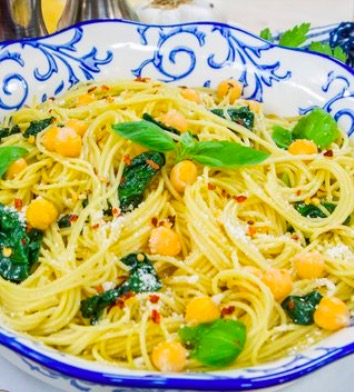 Aglio e Olio Spaghetti with Spinach and Chickpeas