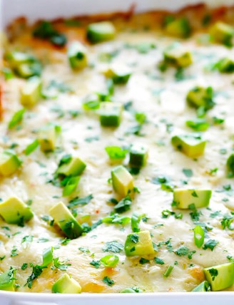 Cover with aluminum foil. Bake for 20 minutes; remove foil; bake for 15 more minutes, until cheese has melted and begins to brown around the edges and casserole is cooked through. Remove from oven.