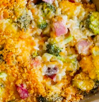 This yummy cheesy ham casserole is full of broccoli and rice and is topped with a wonderful cracker topping. It can be made 2 days in advance to save time, if desired.
