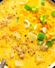 Beer Cheese Potato Soup with Spicy Turkey Sausage