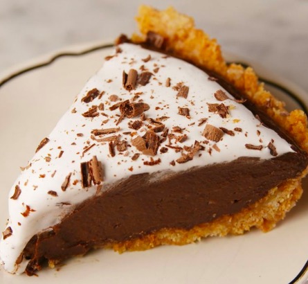 This delicious pie is much like Mexican hot chocolate. It has a little bit of heat to it from the cayenne pepper. Serve it with some whipped topping and garnished with chocolate shavings.