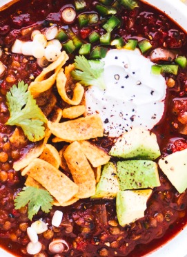 This 30 minute dinner is a fantastic one to serve on meatless Mondays. Lentils are delicious, nutritious and are a nice substitute for meat in this chili. They are full of protein and give a little bit of a chewy texture like meat.