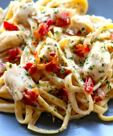 One Pot Chicken Fettuccine Alfredo with Bacon