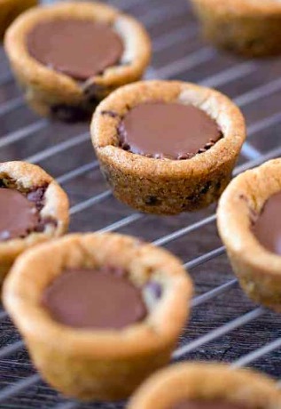 Remove from oven; immediately place 1 Reese's Peanut Butter Cup in the middle of each cookie.