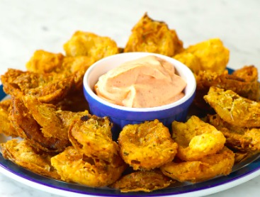 You don't need to go to a restaurant to enjoy this appetizer anymore but can make them easily at home. They are much like a Bloomin Onion but easier for home preparation. Serve them with the tasty sauce.