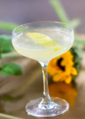 Serve, topped with sparkling wine and garnished with a long, skinny lemon peel.