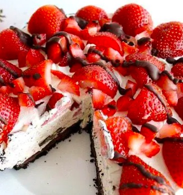 Arrange strawberries on top of the pie. Microwave remaining chocolate; drizzle over the top. Refrigerate again for about 1 hour before serving.