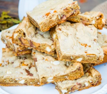Brown Butter Blondies with Crushed Pretzels and Toffee