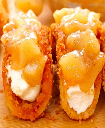 Pipe taco shells with cream cheese filling; top with 1/2 T. apple pie filling. Sprinkle with graham cracker crumbs, if desired.