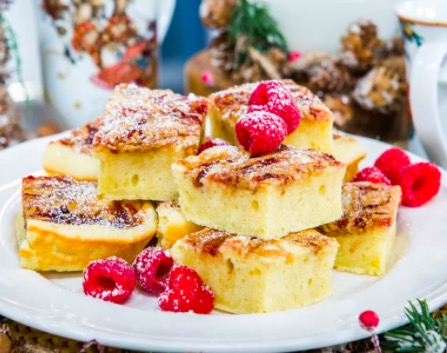Immediately cut into 20 squares. Serve, dusted with powdered sugar, more jam or syrup.