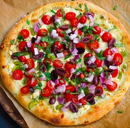 You won't miss the meat or the red sauce in this delicious pizza. It's full of fresh vegetables and makes a great, easy to prepare, meatless meal.