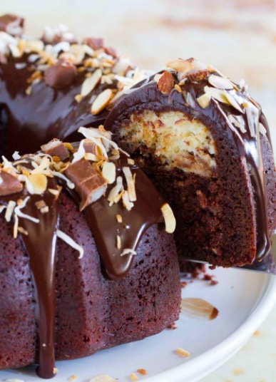 Almond Joy Candy Filled Chocolate Bundt Cake