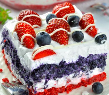 This colorful lasagna is great for a light and refreshing summertime dessert. It's the perfect one to celebrate the Memorial Day or Fourth of July holidays.