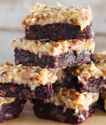 Remove from heat; stir in vanilla extract, pecans and coconut. Spoon onto brownies; evenly spread out frosting.