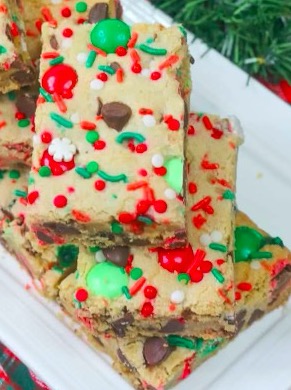Christmas cookies are always great but it can be a pain making them. These have the same yummy taste but are easier and quicker to make. These bars are a great way to serve at a party.
