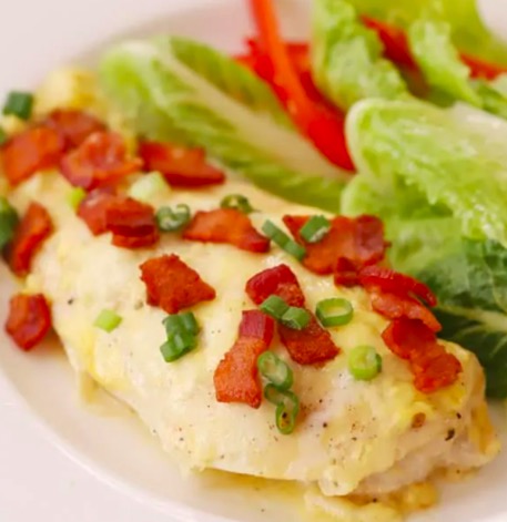 You and your family will love this juicy chicken in a creamy mustard sauce. It's sprinkled with cheese and bacon bits and chopped green onions.