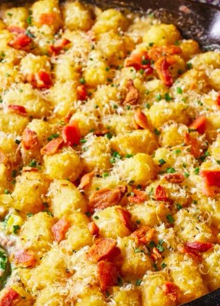 Bake 30-35 minutes until tots are golden. Remove from the oven.