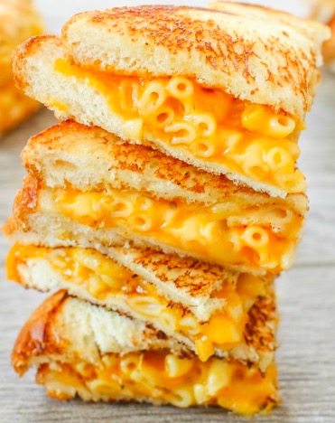 Make sandwiches with two of everyone's favorite dishes, grilled cheese and mac and cheese. Using leftover mac and cheese, your favorite dense bread and cheese slices, you'll make an awesome, quick and delicious lunch.