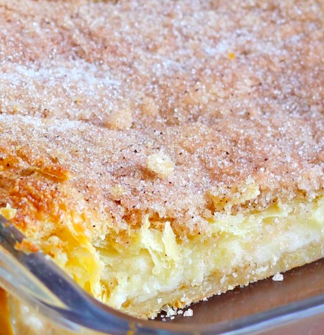 This dessert is so easy to prepare. It's made with canned crescent rolls, cream cheese, butter, vanilla, sugar and cinnamon.