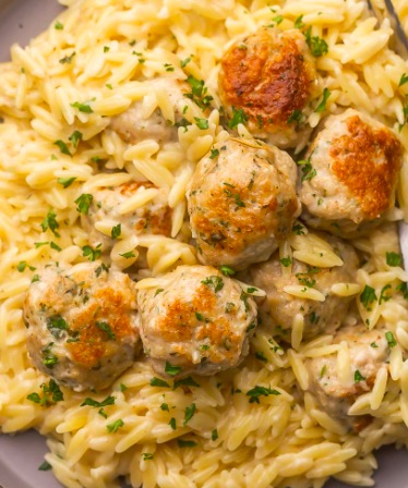 In 45 minutes, this delicious skillet meal can be on the table for everyone to enjoy. It's a satisfying dish with ground chicken meatballs and orzo pasta cooked in a creamy Parmesan cheese sauce.