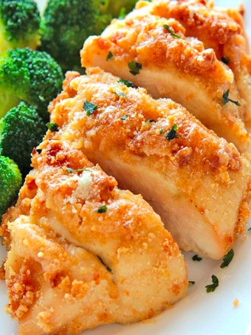 Bake 15-20 minutes; remove from oven; sprinkle breadcrumbs on top of each piece of chicken. Return to oven; bake for another 20 minutes or until chicken is cooked thoroughly and juices run clear. The tops should be browned and chicken will be incredibly juicy.