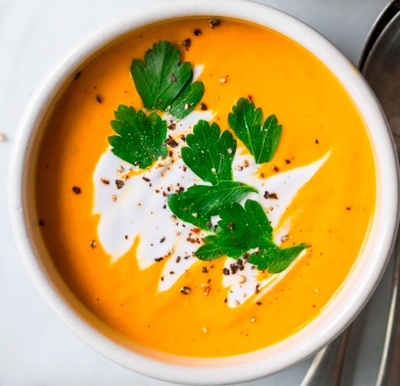 This easy to make soup is great anytime but especially in the fall. It's thick and creamy with a sweet base and the warmth of freshly grated ginger. Use powdered vegetable stock for a vegetarian version.