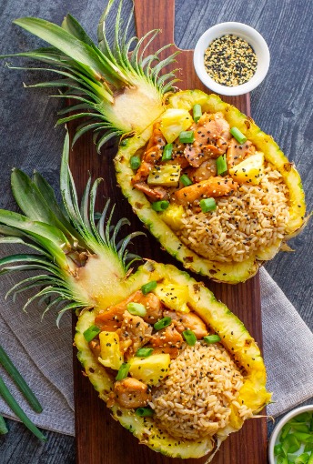 Want to impress family or friends? Serve them fancy chicken teriyaki in pineapple bowls. It's low carb, soy free and a healthy dish with juicy chicken, fresh pineapple chunks, brown rice and a homemade teriyaki sauce.