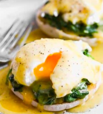 Layer spinach on top of the English muffins; place an egg on top of spinach. Top with Hollandaise sauce.