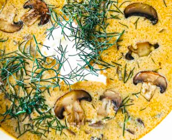 Since sour cream can curdle if heated too much, let the soup cool a little bit before stirring it in. Or, serve the soup in individual bowls topped with the sour cream and fresh dill.