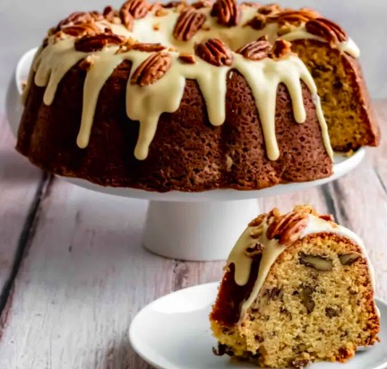 This cake is one of the best cakes that you'll ever make. It's perfect for fall and the holiday season. It's fluffy, moist and flavorful topped with a delicious glaze and whole pecans.