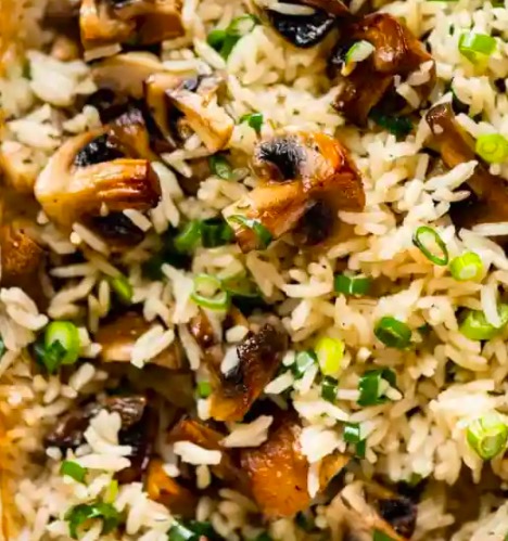 This is a great side that goes with just about any main dish. The rice fluffy, buttery and just plain good with mushrooms that are juicy on the inside and golden brown on the outside.
