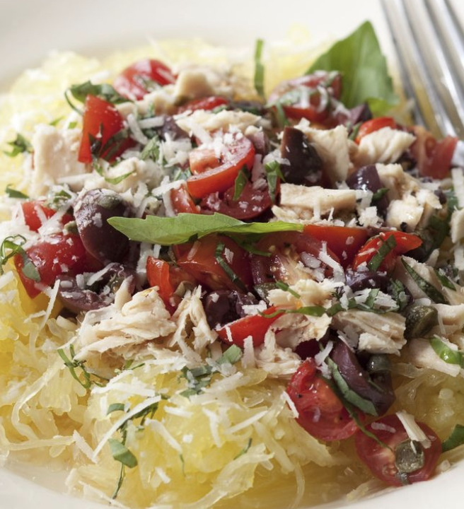 Spaghetti Squash Puttanesca with Tuna