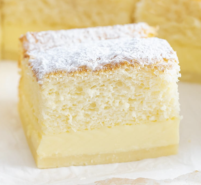 This cake is truly magic! It's a French cake with a few simple ingredients that forms three distinct layers when the batter is baked. The bottom layer is custard, the middle layer is cream and the top layer is a sponge.