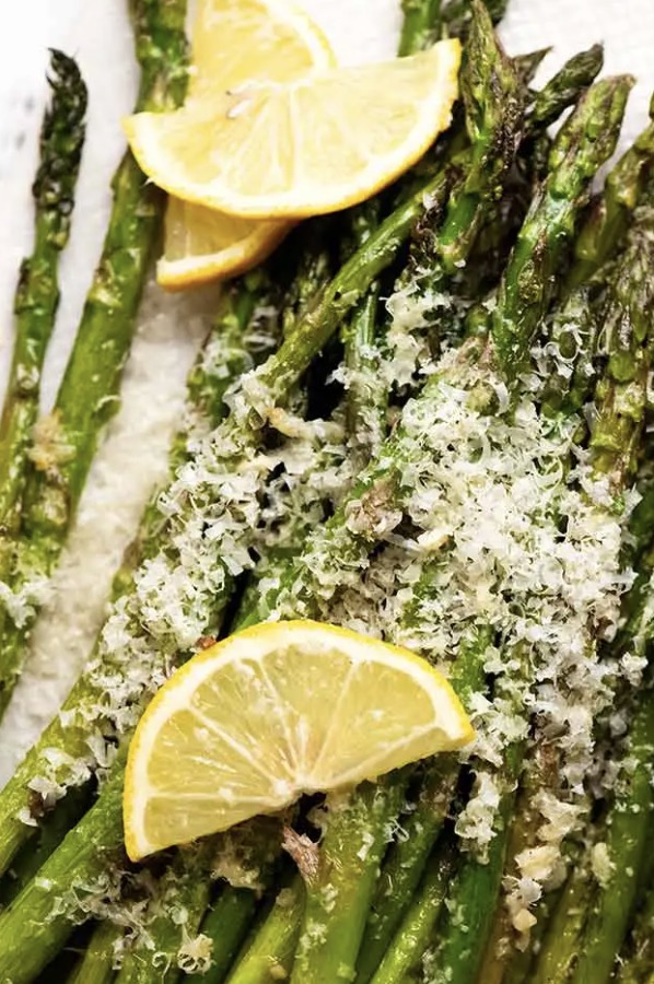 Roasting fresh asparagus makes it taste so much better than steaming or blanching it. It's quick and simple to make. Just pop it in the oven for a few minutes and then finish it with lemon juice and/or cheese, if you wish.