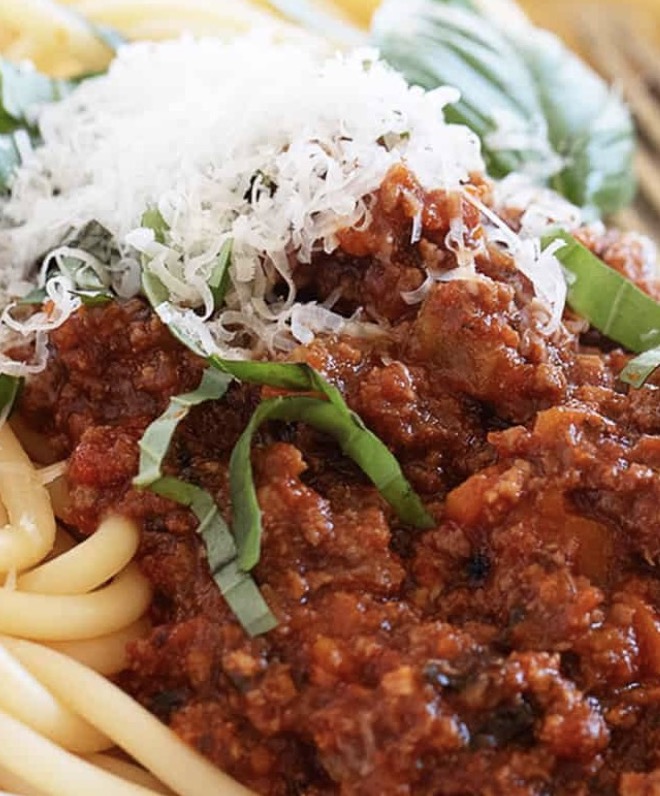 This is a classic meat sauce made with ground beef, carrots, celery, onions and canned tomatoes. Use it for serving over pasta, in lasagna or baked pasta like ziti.