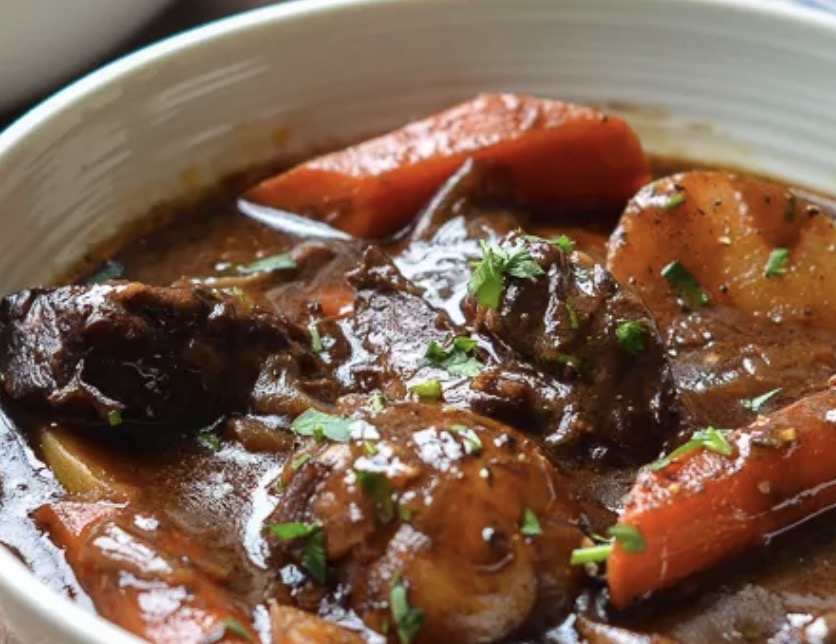 This beef stew is a classic French favorite, especially in cold weather. The beef is amazingly tender with delicious vegetables in a rich wine sauce.