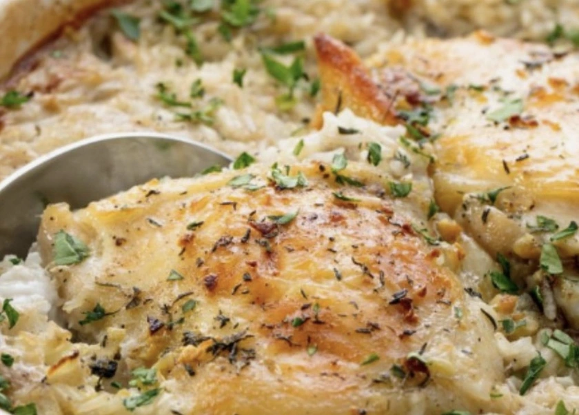 Bake 35-40 minutes or until the chicken is thoroughly cooked, and the rice is tender.