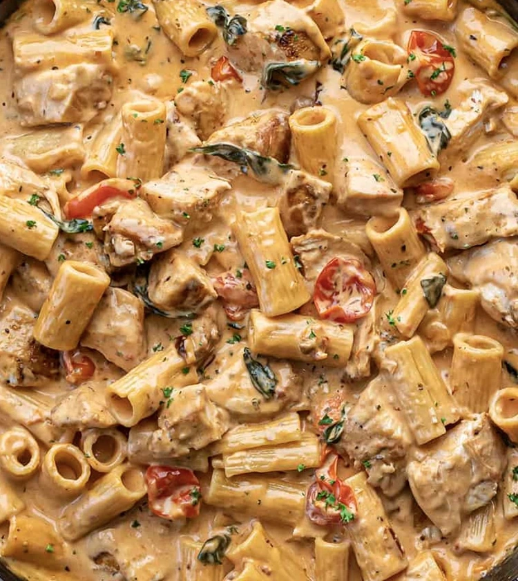 In about an hour, this delicious Tuscan inspired meal can be devoured by your family. It's made with seasoned chicken and rigatoni with spinach, sun-dried tomatoes and Parmesan cheese in a creamy sauce.