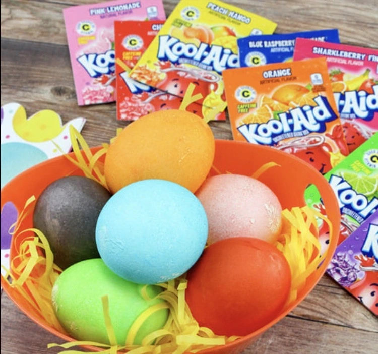 Instead of buying the typical Easter egg coloring kits and dyes, use Kool-Aid. It's more economical, smells fantastic and gives beautiful bright colors.