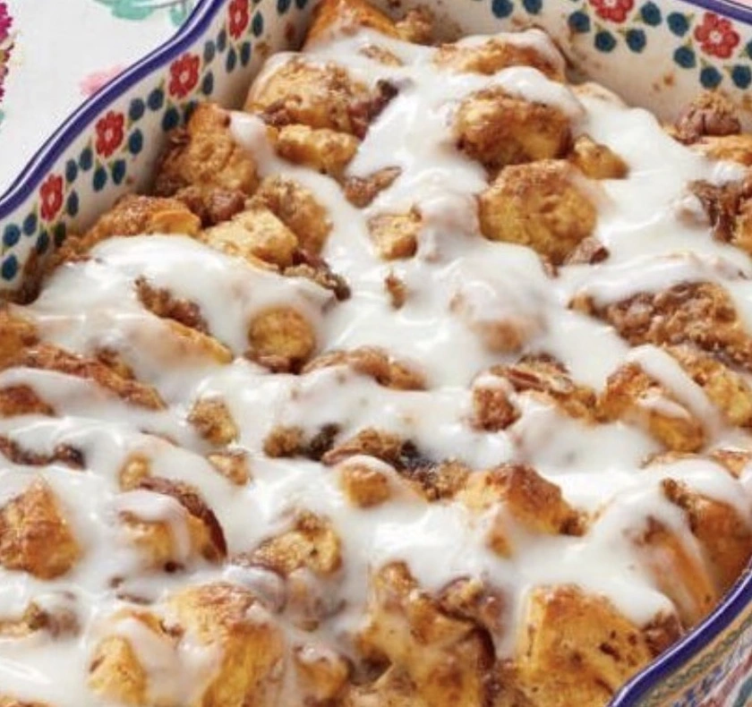 When the casserole is done, allow it to cool for 10 minutes; drizzle the frosting across the top of the casserole.