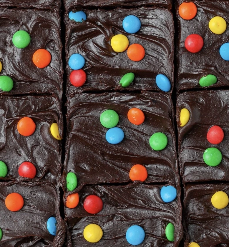 Why buy packages of these brownies at the store when you can make them at home? They are chewy, choclately and fudgy with frosting and garnished with candy coated chocolate chips.
