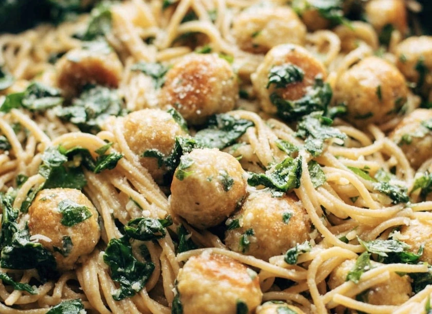 Garlic Herb Spaghetti With Baked Chicken Meatballs