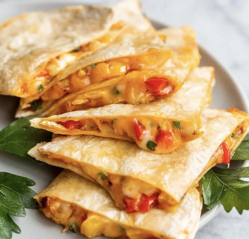 Use your air fryer to make delicious quesadillas with veggies, Mexican seasonings and your favorite cheese. They make a perfect quick snack, lunch or even dinner.