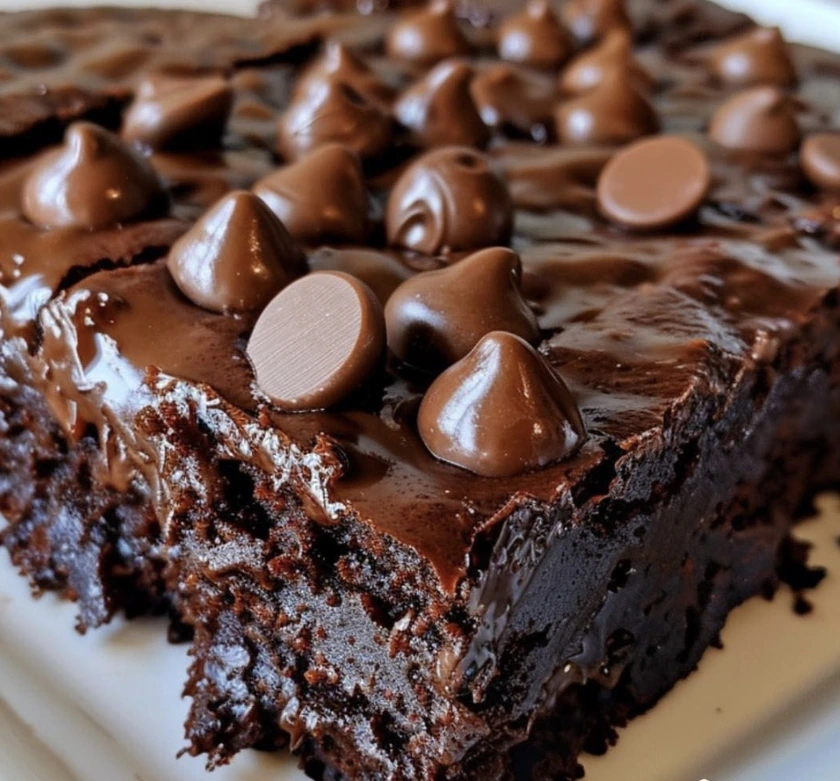 Pour batter into the prepared pan. Sprinkle the chocolate chips evenly on top of the cake.