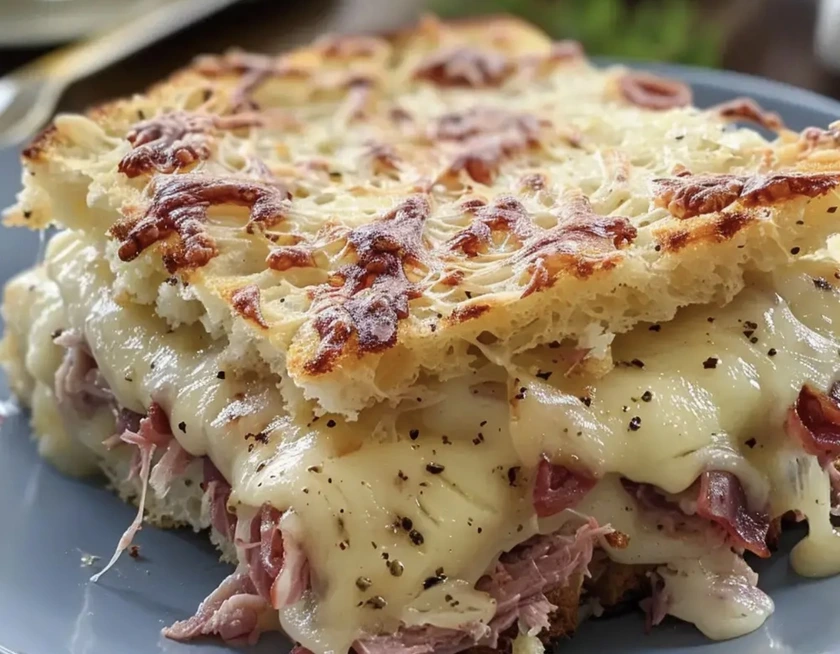 Repeat the layering process with the remaining rye bread, corned beef, sauerkraut, and Swiss cheese.